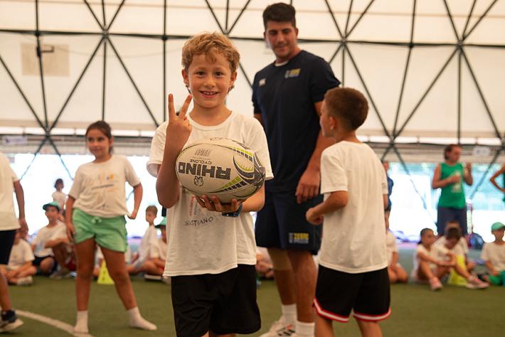 Giocampus, emozioni e sorrisi grazue a quattro atleti della squadra di rugby delle Zebre. Davanti oltre quattrocento bambine e bambini. I giocatori che hanno partecipato all’iniziativa sono stati Bautista Stavile, Gerónimo Prisciantelli, Juan Pitinari e Guido Volpi.