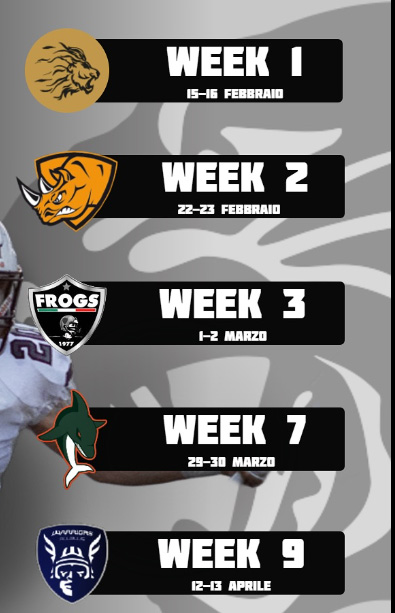 Ecco il calendario della regula season dell'IFL 2025, stagione che vede i Panthers Parma difendere il titolo conquistato a Ravenna nell'Italian Bowl