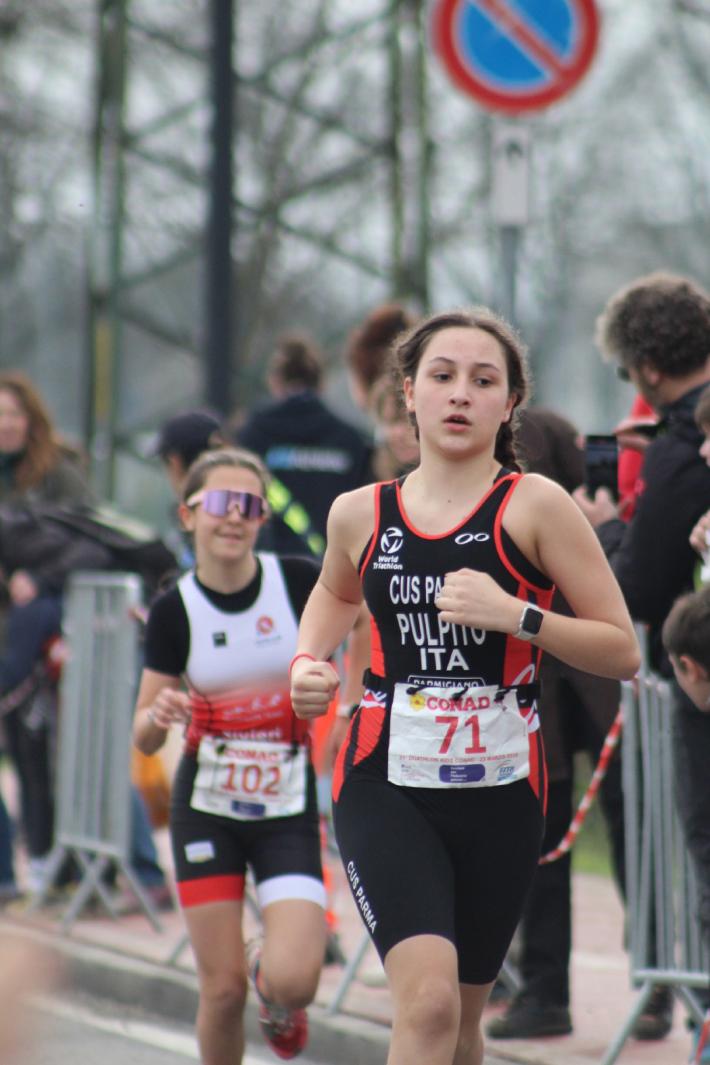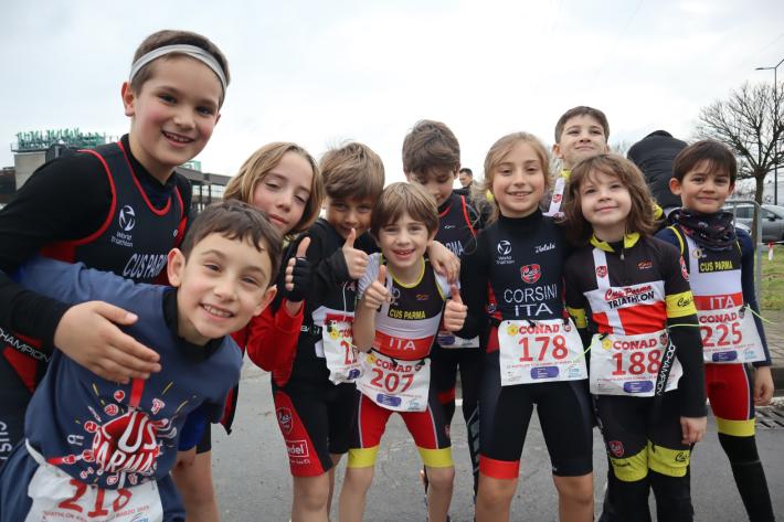 Percorsi nuovi, società da tutto il nord Italia e la passione di sempre. Così la carica dei 400 si riversa nel cuore del Campus Universitario per il 21° Duathlon Kids Conad. In barba al maltempo, è stata un’edizione partecipata con: oltre 800 presenze tra dirigenti, allenatori e accompagnatori. Starter d’eccezione: il referente della Sezione Triathlon del Cus Parma, Michele Ventura, che ha dato il via alle competizioni. Come sempre a fine giornata, le classifiche erano quelle che contavano meno. Tra i più grandi è giusto ricordare: Melissa Tosolini (GoTriTeam) e Luca Cunegatti (TriSwim)che hanno vinto rispettivamente nella categoria Ragazze e Ragazzi. Federico Miante ha tagliato il traguardo per primo nella categoria Youth a e ha anche conquistato il titolo regionale. Nella medesima categoria si è imposta Emi Accorsi (Avia Pervia) anche lei conquistando il titolo regionale. Nella categoria Youth b maschile ha vinto Aaron Franceschini (Leosport), mentre per Youth b femminile a piazzarsi sul primo gradino del podio è stata Chiara Bortolamedi (Buonconsiglio Nuoto). Nella categoria Junior femminile a conquistare la vittoria è stata Lisa Bellotti (Tri-Swim asd) mentre nella categoria Junior maschile a sbancare conquistando sia il primo posto che il titolo regionale è stato Alessandro Pileggi del Cus Parma. <Sono davvero molto orgoglioso dei risultati raggiunti dalla sezione Triathlon – commenta il presidente Iacopo Tadonio -. Si tratta dell’ennesima conferma che questo sport, pur essendo impegnativo, è particolarmente apprezzato anche dai giovanissimi proprio perché abbraccia più discipline. . Fondamentale è anche il sostegno di realtà importanti del territorio con cui condividiamo valori oltre che partnership, primi fra tutti Conad al nostro fianco come main sponsor. Doveroso ricordare anche il supporto dei Consorzi di Tutela della Coppa di Parma e del Salame Felino che hanno servito oltre 1.000 panini ai giovani atleti, in un terzo tempo che ha visto anche la partecipazione di Birrificio Toccalmatto, Vini Ariola e Artcafè>.
