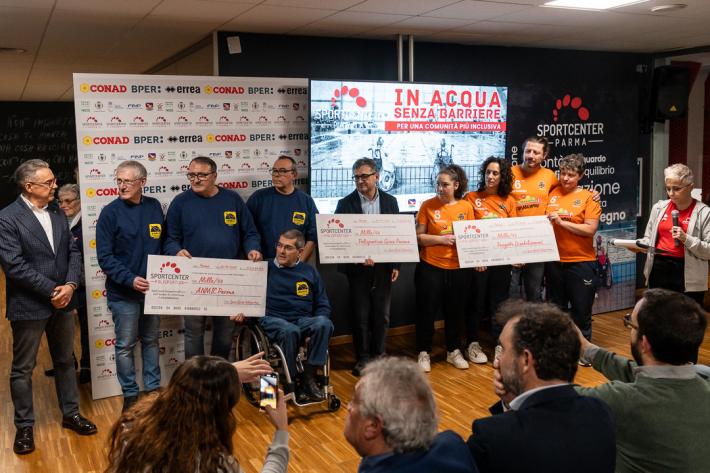 Durante la presentazione sono intervenuti anche Gianmaria Manghi, coordinatore delle politiche sportive della Regione Emilia-Romagna, Lorenzo Lavagetto, vicesindaco del Comune di Parma, accompagnato da Davide Antonelli delegato allo Sport, Ilario Battaglia, vice-presidente, Cip Emilia-Romagna e delegato Regionale FINP Emilia-Romagna e Lucio Mioni, delegato CIP Parma. Inoltre, erano presenti anche alcuni atleti di altre società: Enrico Botta della S.S.D DLF Sport Bologna, Martina Cicognani, Michele Amato e Angelica Santomauro della Rari Nantes Forlì. Nel corso dell’incontro sono stati consegnati i fondi raccolti da Sport Center Parma a favore di ANMIC Parma e Polisportiva Gioco Parma, associazioni impegnate in importanti progetti di inclusione sociale per le persone con disabilità, a conferma della partnership pluriennale che lega queste realtà.