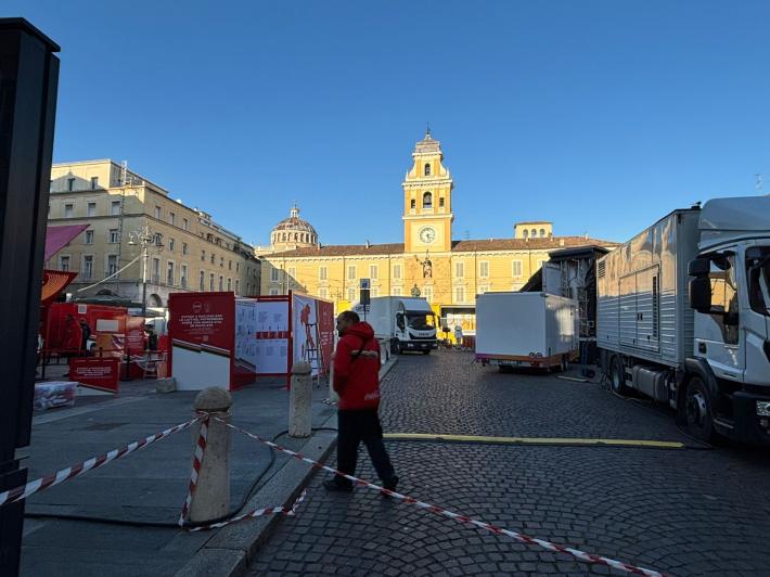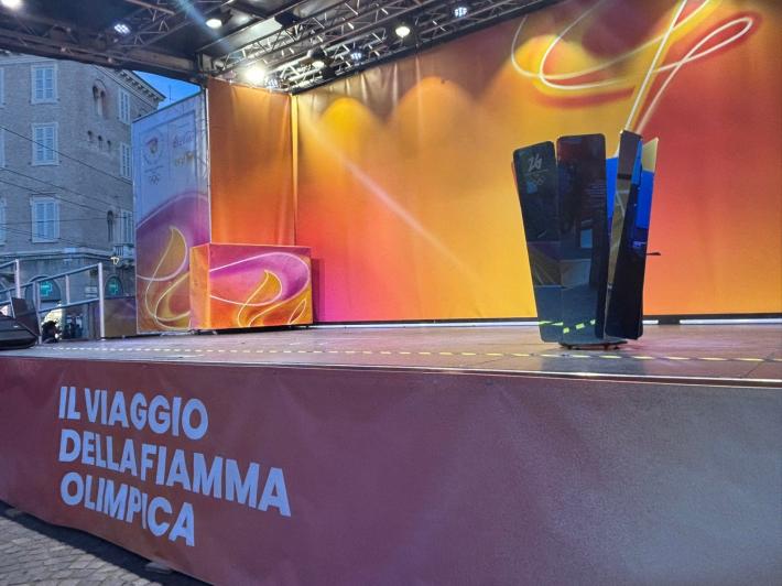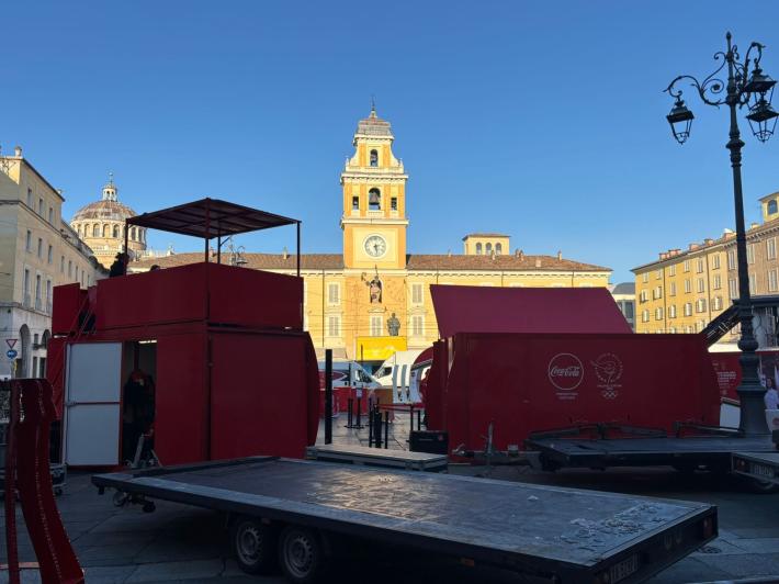 Transenne, stand, sponsor. Anche un palco. Piazza Garibaldi si è trasformata per ospitare il passaggio della Fiamma olimpica di Milano Cortina 2026. L'ultima tedofora è stata Giulia Ghiretti, arrivata in piazza pochissimi minuti dopo le 19,30, con il rito dell'accensione del braciere sul palco.