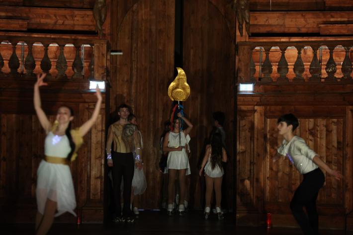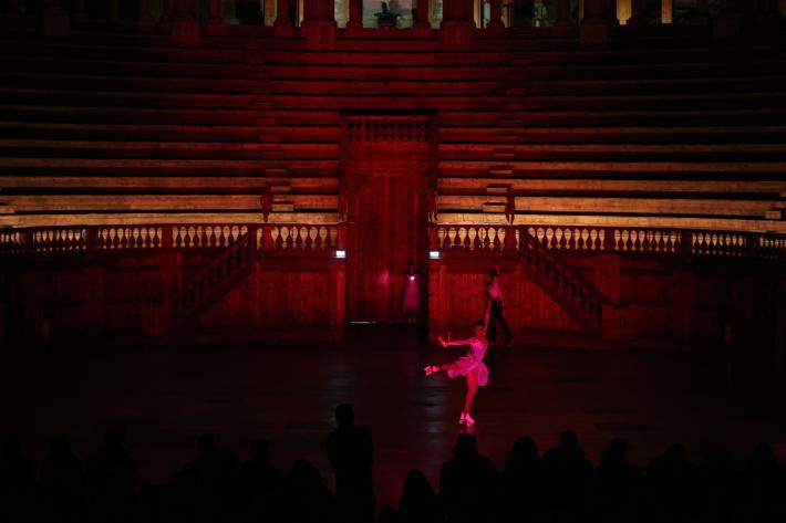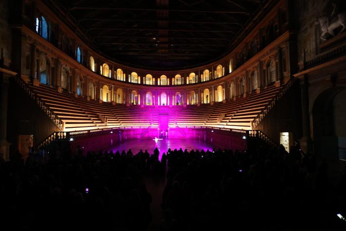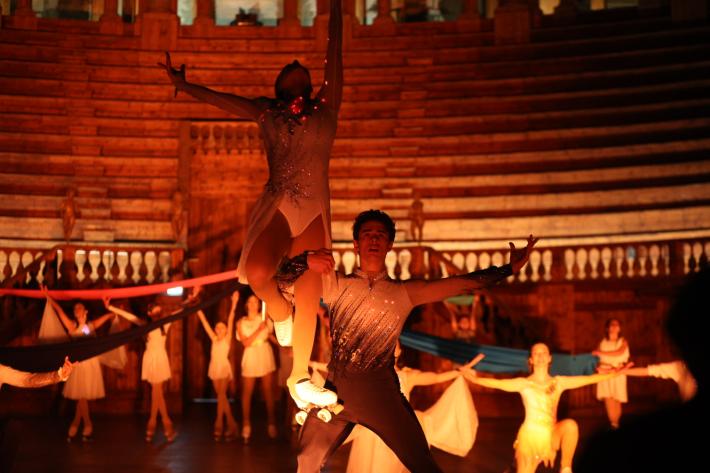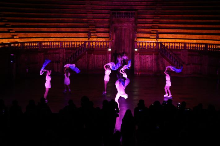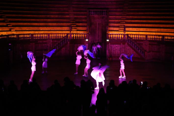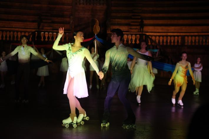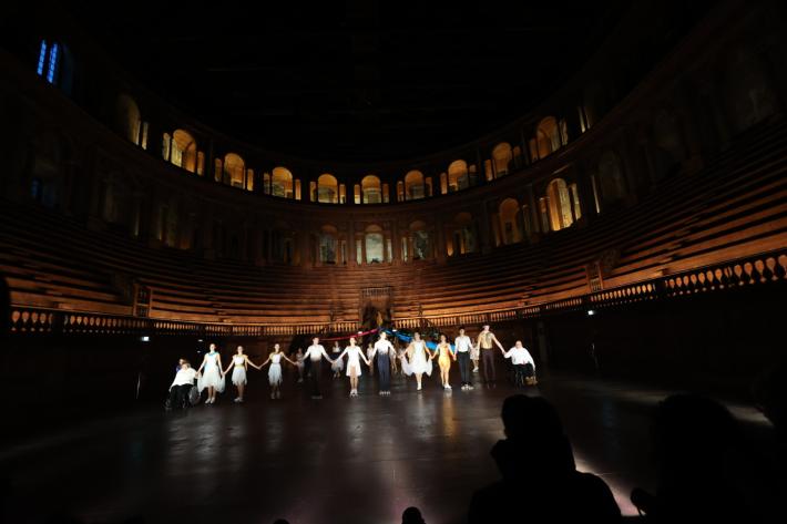 Il fascino del teatro Farnese fa da cornice all'arrivo della Fiamma olimpica. L'esibizione della Nazionale di Skate