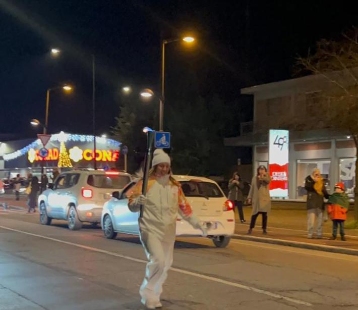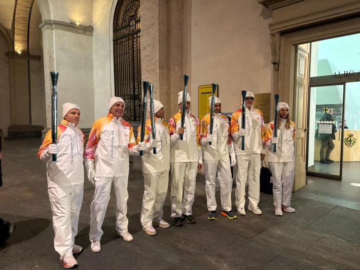 Alle 19,10 l'arrivo della Fiamma olimpica in borgo XX Marzo è la partenza del tedoforo Guido Barilla