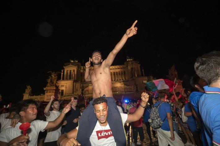 Roma è letteralmente impazzita nelle fan zone dedicate ai supporter, già collaudate in occasione della semifinale vinta dalla Nazionale contro la Spagna:. La gioia dei tifosi è esplosa in particolare a piazza del Popolo - tra le più grandi aree allestite in Europa per questo tipo di evento - accessibile solo tramite prenotazione, con una capienza massima consentita di 2.500 posti. Altri mille in estasi ai Fori Imperiali. Il rischio di eccessi da parte dei tifosi, soprattutto nel dopopartita, ha spinto nella Capitale al transennamento di alcuni monumenti in centro storico, come in zona Campo dè Fiori, piazza di Spagna e Fontana di Trevi.