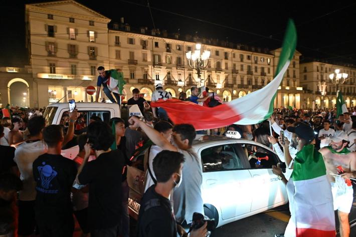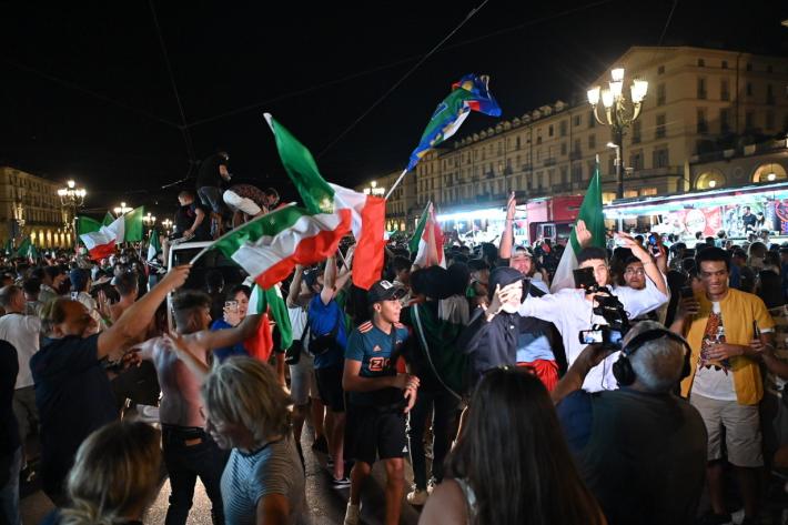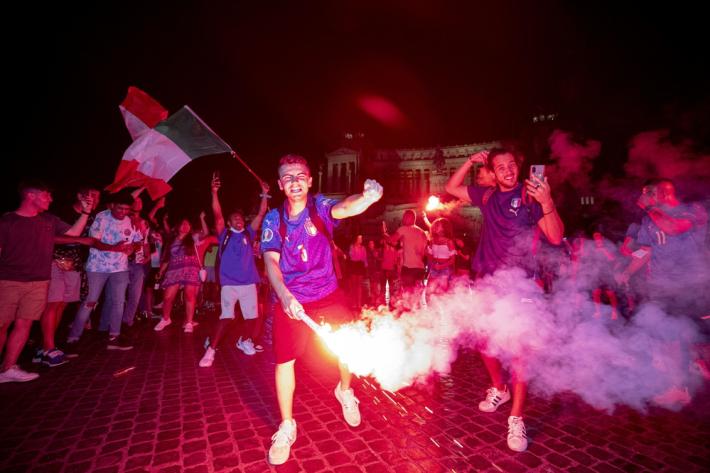 Nel Paese c'è chi ha tifato la Nazionale lontano dalle strade, sventolando il tricolori dai balconi e al riparo dai rischi del Covid e chi - al contrario - ha sfidato virus e assembramenti sognando la coppa europea davanti ai mega proiettori in luoghi pubblici all’aperto, sui lidi, nei bar, spesso sotto lo sguardo delle forze dell’ordine. In tutto il Paese sono stati rafforzati controlli per scongiurare il rischio di maxi assembramenti.