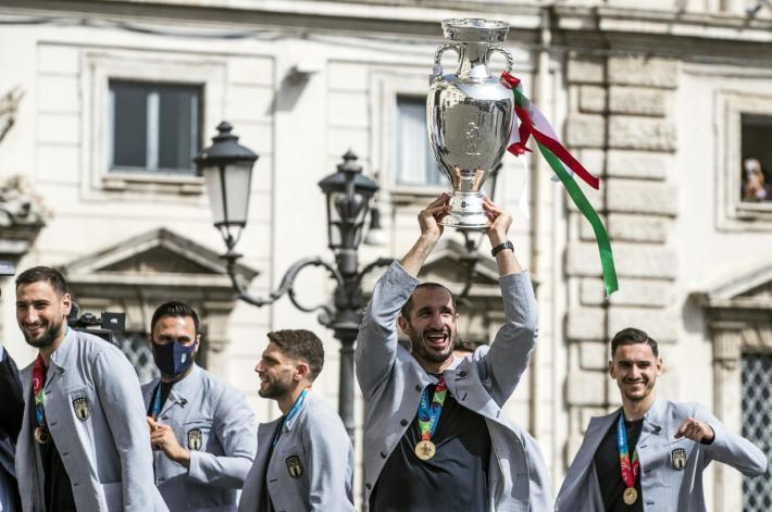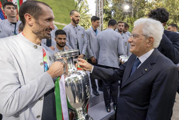 «Non abbiamo vinto l’Europeo per un rigore in più, ma per l’amicizia che ci ha legato in questa avventura: abbiamo tifato Matteo Berrettini, ci siamo sacrificati e aiutati. Ci siamo sentiti fratelli d’Italia, rispondendo a quanto ci aveva chiamato il nostro Paese». Lo ha detto Giorgio Chiellini, capitano della nazionale di calcio campione d’Europa, rivolgendo il ringraziamento al Presidente della Repubblica, Sergio Mattarella, che riceve gli azzurri nei giardini del Quirinale. «Vorremmo dedicare questa vittoria a Davide Astori, che ho conosciuto e che avremmo voluto qui con noi oggi». «Questa vittoria è per lei, che è stato il nostro primo tifoso - ha aggiunto Chiellini rivolgendosi a Mattarella - e ai milioni di italiani nel mondo che non ci hanno mai fatto sentire soli».