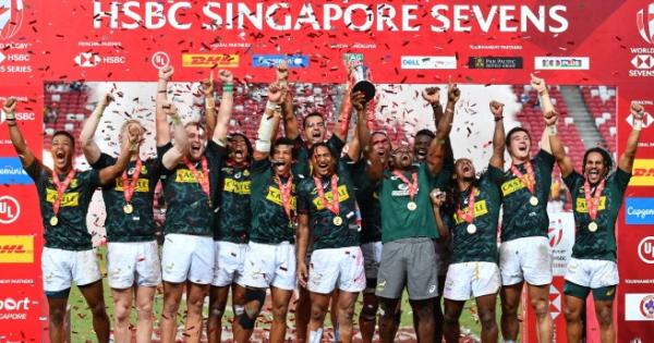 Dopo il deludente settimo posto nel torneo di Hong Kong, la nazionale sudafricana di rugby a 7 si rifà con gli interessi nell’ottava tappa della World Rugby Sevens World Series, giocata tra sabato 13 e domenica 14 aprile nel National Stadium di Singapore. Nella finalissima del torneo, i Blitzboks allenati da Neil Powell battono le Fiji in una partita dall'andamento incredibile: gli isolani, infatti, partono fortissimo e chiudono il primo tempo sul 19-0 grazie alle mete di Aminiasi Tuimaba, Napolioni Bolaca e Vilimoni Botitu (due delle quali trasformate dallo stesso Bolaca), ma i sudafricani, campioni a Singapore anche nel 2018, non si perdono d'animo e compiono l'impresa nel secondo tempo, prima segnando 17 punti in tre minuti con le mete di Kurt Lee Arendse, Angelo Davids e Ryan Oosthuizen, quest'ultima trasformata da Selvyn Davids, e poi completando la rimonta nell'ultimo giro di lancette ancora con Selvyn Davids, che calcia tra i pali la punizione che vale il 20-19 finale e fa esplodere di gioia i rappresentanti della Nazione arcobaleno.