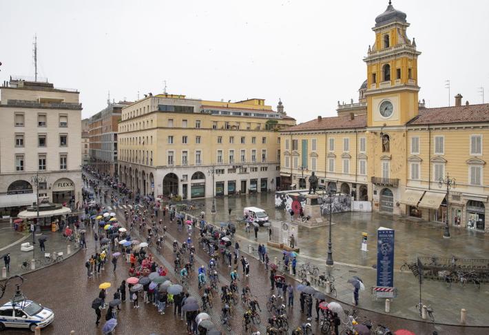 Il Giro d’Italia, a due anni dall’ultima volta, ha attraversato oggi Parma e la sua provincia, in un’edizione che vuole essere simbolo di rinascita per il nostro Paese. È stato, di fatto, il primo grande evento «non chiuso» al pubblico, a parte il contingentamento nelle zone di partenza e arrivo. Partenza da Piacenza con serpentone variopinto lungo la via Emilia fino a Parma, dopo aver attraversato anche Fidenza ( via Gramizzi, via 4 novembre, via 24 maggio, via Borghesi e viale Martiri della Libertà), poi Ponte Taro. In città la corsa ha attraversto via Gramsci, via D’Azeglio, via Mazzini, Piazza Garibaldi e strada della Repubblica, poi via San Michele, via Duca Alessandro, via Viotti e via Torelli, via Traversetolo Botteghino, Pilastrello, Marano e Piazza. E ancora Traversetolo per attraversare l’Enza per l'ingresso in terra reggiana, poi nel Modenese per l'arrivo a Sestola.