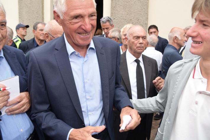 Tra gli applausi della folla, composta anche da tanta gente comune, a portare il feretro sono stati Beppe Manenti, Gianbattista Baronchelli, Massimo Girotto, Osvaldo Bettoni, Dario Acquaroli, Moreno Argentin, Paolo Savoldelli, Giovanni Bettineschi.