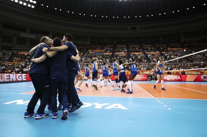 L’Italia femminile di pallavolo ha battuto 3-2 il Giappone nella prima partita della Final Six dei Mondiali, qualificandosi per le semifinali: 25-20 22-25 25-21 19-25 15-13 i parziali in favore delle azzurre. E’ la decima vittoria di fila.