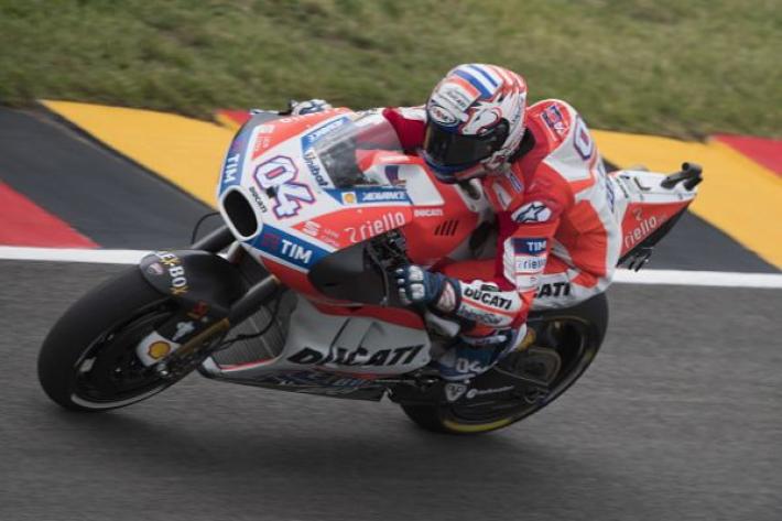 Prime libere Era stato invece di Andrea Dovizioso il miglior tempo delle prime prove libere in vista del Gp di Germania, nona prova del Mondiale MotoGp in programma domenica sul circuito del Sachsenring. Il pilota della Ducati, leader del Mondiale, ha fatto segnare su pista asciutta il tempo di 1'21"599 precedendo di 38 millesimi lo spagnolo Maverick Vinales (Yamaha) e di 190 millesimi l’altro spagnolo Dani Pedrosa (Honda). Sesto tempo, a 299 millesimi di ritardo da Dovizioso, per l'altro spagnolo della Honda Marc Marquez mentre Danilo Petrucci, con la Ducati non ufficiale del team Pramac, è settimo.