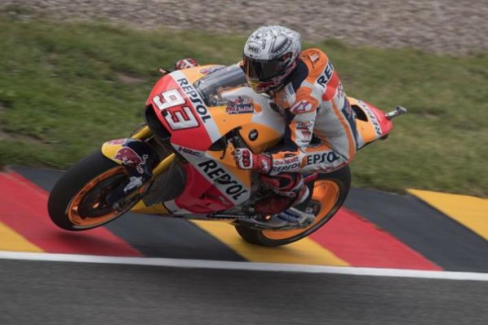 Pista bagnata per la seconda sessione di prove libere del Gp di Germania, classe MotoGp: il migliore è stato Hector Barbera che ha fatto segnare il tempo di 1'28"115. Il pilota spagnolo, in sella ad una Ducati non ufficiale, ha preceduto le Honda dei connazionali Marc Marquez e Dani Pedrosa, staccati rispettivamente di 63 e 353 millesimi.