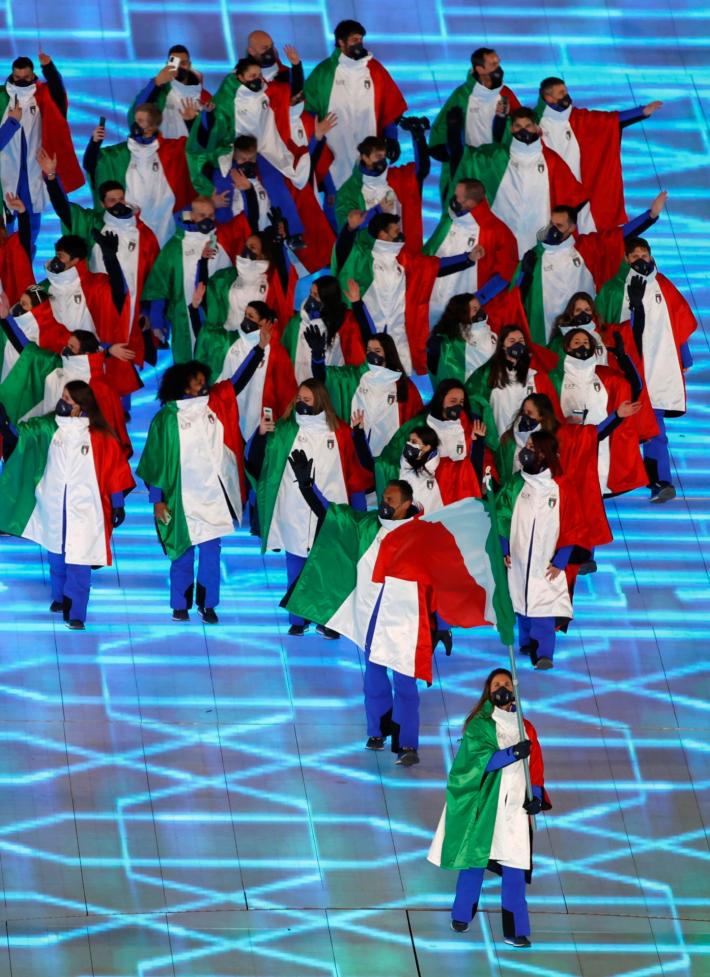 Un cubo di ghiaccio - riferimento all’impianto di fronte al "Nido" che nel 2008 ospitò il nuoto e oggi è stato riciclato per il curling - ripercorre i nomi delle 23 edizioni precedenti, fino all’apparizione dei cinque cerchi. Poi inizia la sfilata, aperta come da tradizione dalla Grecia e conclusa dalla Cina, con l'Italia penultima in quanto Paese organizzatore, con Milano-Cortina nel 2026, della prossima Olimpiade invernale. A guidare la delegazione azzurra Michela Moioli, che a Pechino sogna il bis dell’oro conquistato quattro anni fa nello snowboardcross: era la portabandiera designata della cerimonia di chiusura ma ha dovuto sostituire l’amica Sofia Goggia, costretta a posticipare il suo arrivo in Cina per l’infortunio di Cortina. "È stata un’esperienza unica - il suo commento a caldo - Sono onorata di averlo fatto per me e per tutti gli italiani e anche per il movimento dello snowboard. È stata una cosa unica che mi ha dato una grande carica. Mando un grande abbraccio a Sofia che son certa che arriverà qui e darà il meglio di sé come tutti noi. Adesso finalmente i Giochi possono iniziare".