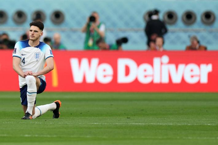 Debutto da incorniciare per l'Inghilterra, che si impone per 6-2 contro il malcapitato Iran nel match inaugurale del gruppo B ai Mondiali in Qatar. Una sfida che si chiude di fatto nel primo tempo, quando le reti di Bellingham, Saka e Sterling indirizzano da subito la contesa. La gara si apre con "God save the King", intonato per la prima volta a un Mondiale, e con l’inno iraniano non cantato dai giocatori in campo in segno di protesta nei confronti del regime. All’8', un grave infortunio al naso accorso al portiere asiatico dopo uno scontro con un compagno ferma a lungo il gioco, che riprenderà solo diversi minuti più tardi dopo la sostituzione. Il vantaggio inglese arriva al 35'. Shaw viene servito sulla sinistra e mette un traversone perfetto sulla testa di Bellingham, che insacca nell’angolino lontano. Il centrocampista del Borussia Dortmund diventa così il primo giocatore nato dopo l’anno 2000 a segnare ai Mondiali. Al 43' è Saka a raddoppiare: Shaw batte un angolo dalla sinistra, Maguire fa da torre trovando l’esterno dell’Arsenal che infila la palla sotto l’incrocio grazie a un pregevole mancino. Durante il primo dei 14 minuti di recupero arriva il 3-0. Kane dalla destra dribbla un uomo e mette una palla al bacio per Sterling che segna al volo con l’esterno destro. È il punteggio con cui le due squadre vanno all’intervallo. Al 17' della ripresa è ancora Saka a firmare il poker: Sterling prende palla e serve il compagno, che dalla destra si accentra e con il sinistro trova una conclusione a giro che termina la sua corsa nell’angolino lontano con il portiere che rimane immobile. Tre minuti dopo, l’Iran trova il gol della bandiera. Gholizadeh dalla destra imbuca per Taremi che sfugge a Maguire e batte Pickford con un bel destro che tocca la traversa e finisce in fondo al sacco. I Tre Leoni però non si scompongono e al 26' mettono a referto la quinta rete quando Rashford, entrato da pochi secondi, riceve da Kane, dribbla Hosseini in area e segna con il sinistro. Al 45' c'è ancora tempo per il sesto gol di Grealish, segnato in contropiede a porta vuota dopo l’assist di Wilson. Al 10' di recupero, dopo una nuova lunga pausa per infortunio a metà della ripresa, l'arbitro assegna un rigore agli asiatici dopo il consulto al Var. Dagli 11 metri Taremi spiazza Pickford siglando la sua doppietta personale. La prima giornata del girone B si concluderà stasera con la sfida tra Stati Uniti e Galles.