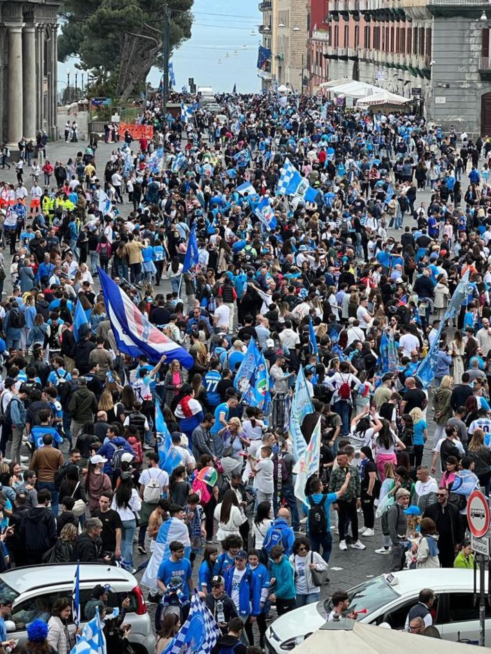 Il pareggio della Salernitana spegne la festa del terzo scudetto del Napoli, in una città già pronta a esultare ma che a questo punto dovrà attendere ancora qualche giorno. A Forcella il finale di partita è stato comunque accolto dagli applausi dei tifosi, seguiti da alcuni fuochi d’artificio. Delusione invece per i tanti turisti arrivati in città per questo lungo ponte, che aspettavano di festeggiare durante il loro soggiorno in città lo scudetto del Napoli.