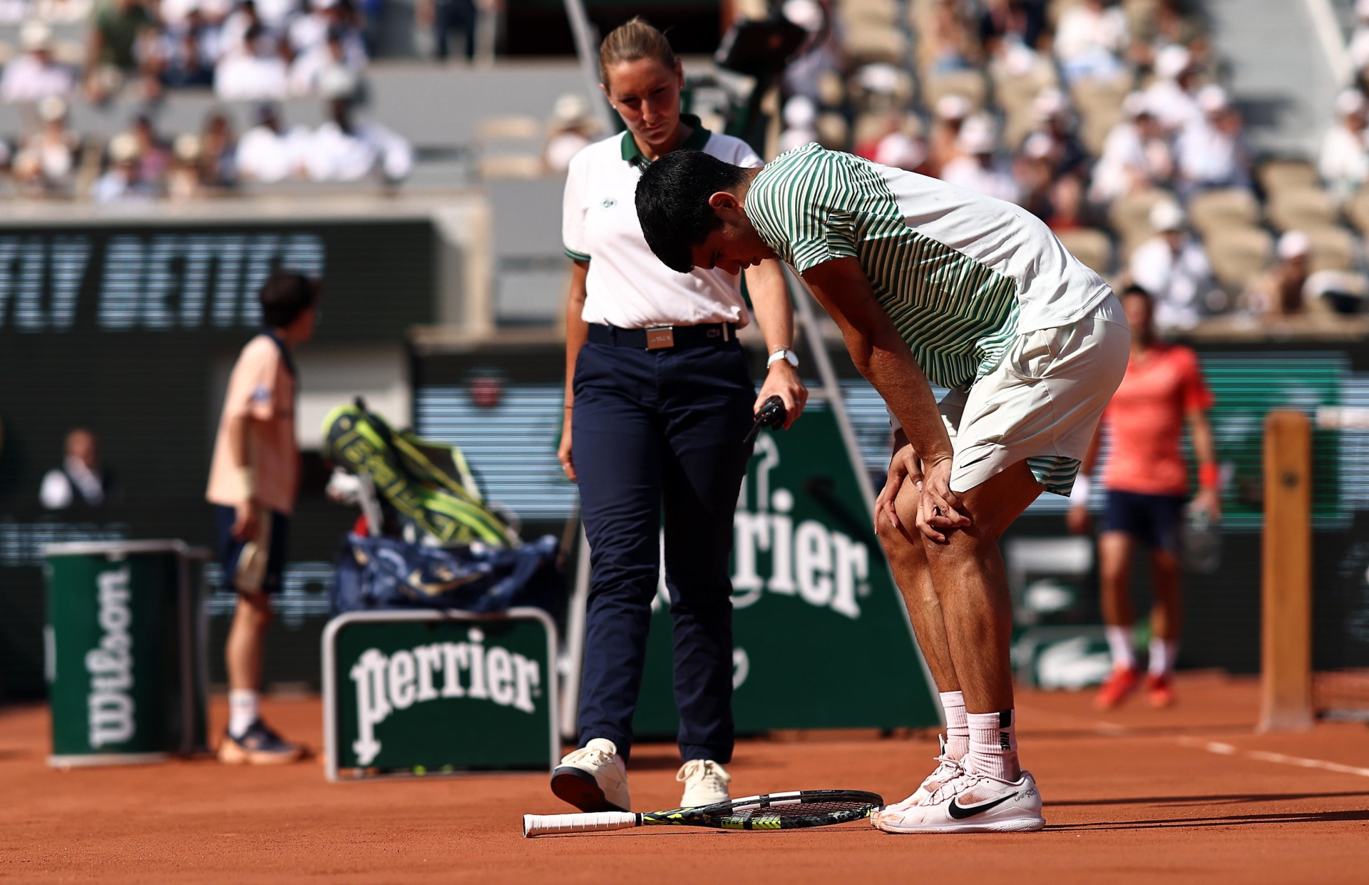 Alcaraz è stato vittima di un infortunio in avvio di terzo parziale che lo ha limitato per il resto del match. Nella seconda semifinale il norvegese Casper Ruud (4) non ha lasciato scampo al tedesco Alexander Zverev (22) vincendo 6-3 6-4 6-0 e riconquistando la finale a Parigi.