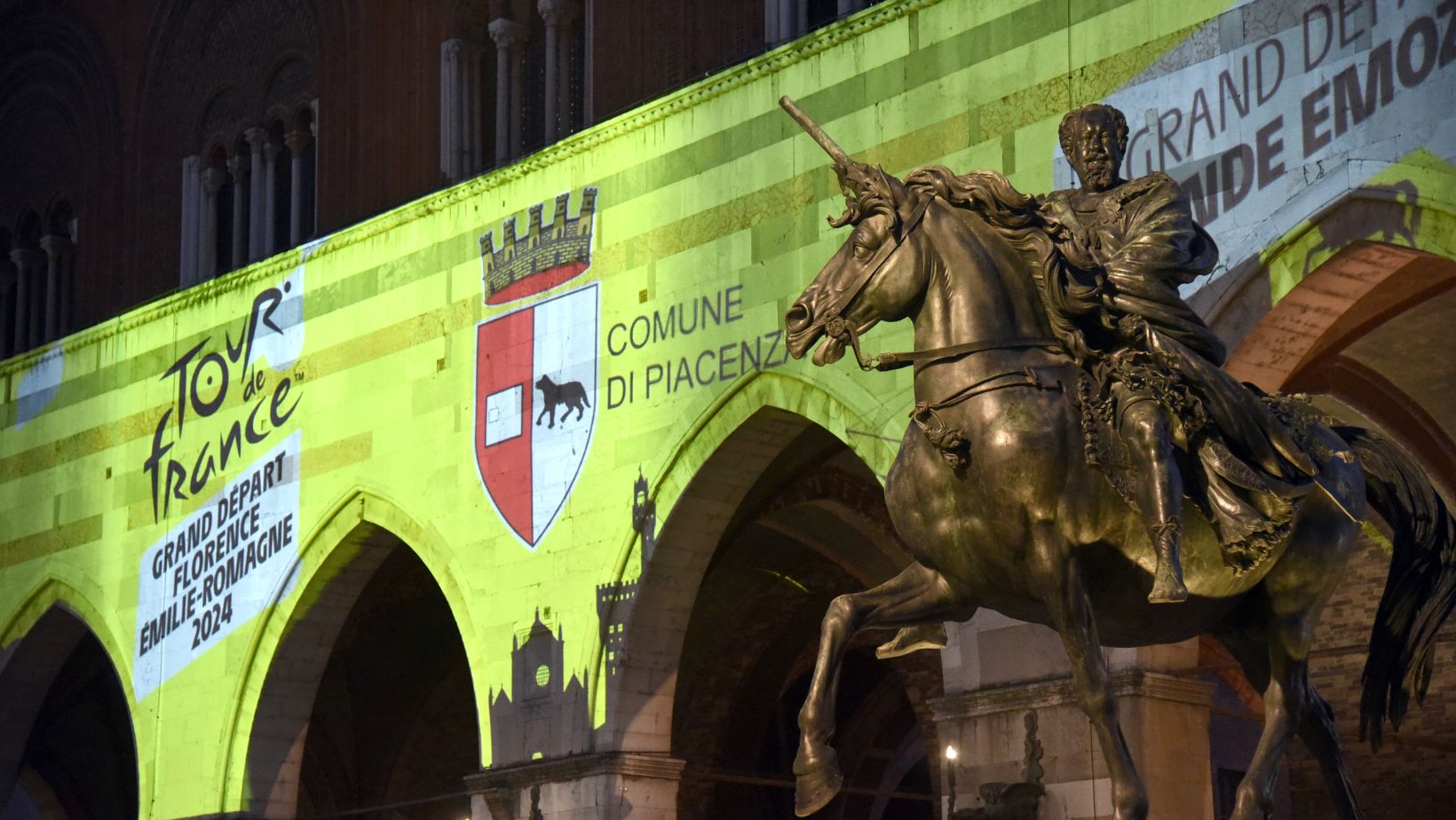Dopo Firenze-Rimini, le tappe successive sono Cesenatico-Bologna e Piacenza-Torino, con 38 località attraversate. Tanti gli edifici che lungo il percorso delle tre tappe si stanno illuminando di giallo: dal Castello di San Leo, in Valmarecchia (Rimini), al Grattacielo di Cesenatico, dal Ponte di Tiberio, l’Arco d’Augusto e Castel Sismondo a Rimini, ai viali di Bologna, da Piazza Cavalli a Piacenza alle rotonde in fiore di Cervia, in occasione di Cervia Città Giardino.