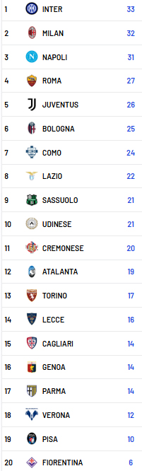 Carlos Augusto, servito con un cambio gioco da Barella, verticalizza per il capitano nerazzurro, che sul lato corto dell’area sgomita con Marcandalli, vince una serie di contrasti e con un sinistro teso buca la porta genoana. Nei minuti restanti della prima frazione, il Genoa resta incapace di reagire concretamente. La ripresa inizia senza grandi scossoni. Dopo i primi dieci minuti, l’Inter comincia a riprendere campo schiacciando gli avversari negli ultimi 30 metri. Eppure al 68', nel momento in cui i nerazzurri sembrano in controllo del match, arriva la rete che dimezza lo svantaggio del Genoa. Confusione tra i difensori nerazzurri della quale approfitta Vitinha, che sfrutta un’uscita timida di Sommer e, dopo averlo saltato, appoggia il pallone in rete. Il gol risveglia la squadra di De Rossi, che torna a farsi vedere nella metà campo avversaria. Il fortino dell’Inter trema in un paio di occasioni, ma resiste fino al triplice fischio. Dopo questa giornata, i nerazzurri voleranno in Arabia Saudita per la Supercoppa Italiana, che li vedrà impegnati venerdì 19 nella semifinale con il Bologna. Poi, dopo Natale, gli uomini di Chivu saranno impegnati a San Siro contro l’Atalanta (calcio d’inizio domenica 28 alle 20:45). Per il Genoa, il prossimo impegno in calendario sarà sempre con l’Atalanta, il 21 dicembre alle 20:45.