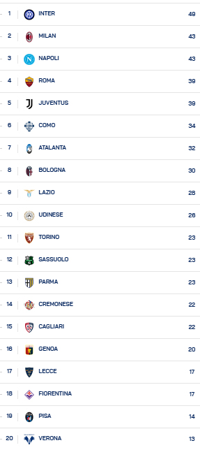 serie A 21a giornata