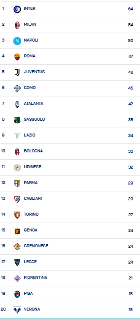 SERIE A - 26^ GIORNATA