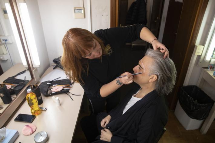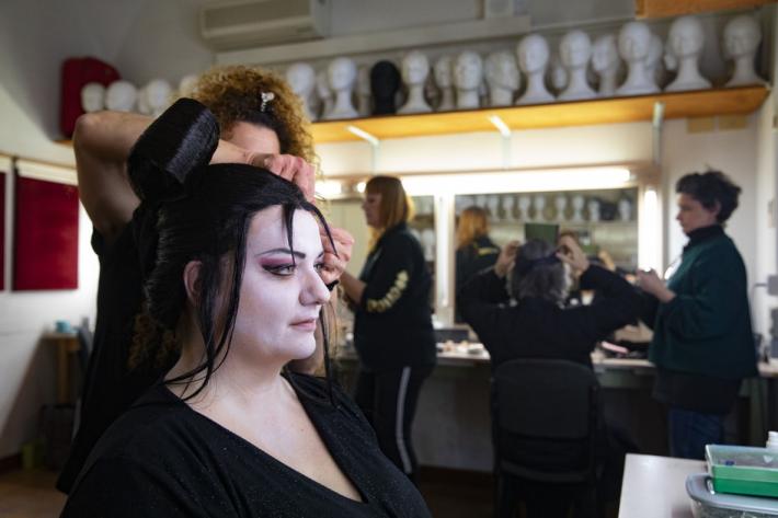 Rossana Verti coordina i reparti di sartoria, trucco e parrucco del Regio. Il lavoro comincia sei mesi prima di un debutto (tre, se si tratta di una “ripresa”) innanzitutto dal confronto con il costumista che, book variopinto alla mano, indica come dev'essere il risultato finale. Giuseppe Panarello, come abbiamo già visto, si occupa dei costumi. Cinzia Costantino è la referente per il reparto di trucco e parrucco: tre dipendenti - Alessandro Ferrari, Barbara Re, Stefania Zuccotti - più una serie di professionisti ingaggiati con contratti a termine a seconda delle necessità. Un lavoro di precisione ma in velocità, per non stressare il cantante.