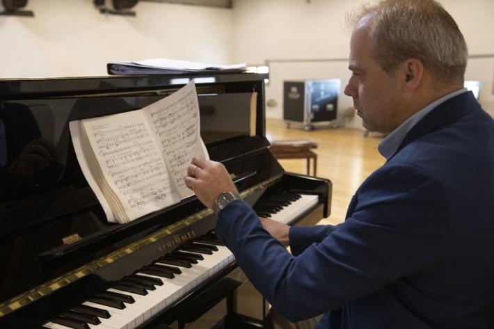 Della parte visiva, abbiamo già riferito, nelle puntate scorse. Ma l'anima dello spettacolo, immateriale eppur fondamentale,  è quella  agìta da cantanti, coro e orchestra. I divi e le dive del bel canto come arrivano in palcoscenico? Studiando, studiando, studiando: ciascuno, a casa propria, con il proprio insegnante (sì, anche i grandi  continuano a prepararsi!).  Un mese prima del debutto inizia la tabella di marcia delle prove in teatro: fondamentale diviene la figura del maestro collaboratore.  Il termine si declina in vari profili, come scopriremo. Il diploma in pianoforte è requisito essenziale, in più serve l'esperienza teatrale; ora esistono corsi specifici al Conservatorio «Boito». Proprio al «Boito» insegnano i maestri collaboratori de «I due Foscari» del Festival Verdi, Raffaele Cortesi e Giuliana Panza.  Dietro le quinte di  «Nabucco» ci sono i maestri Claudio Cirelli e Dario Tondelli; di «Luisa Miller» in San Francesco Gianluca Ascheri e Andrea Severi.