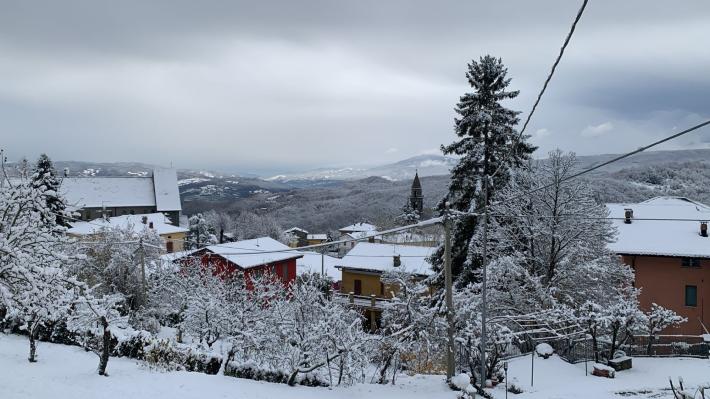 Appennino ancora in bianco questa mattina dopo la nevicata di ieri, la prima della stagione. Come si vede nelle foto, a Tarsogno il panorama è ancora "bianco", ha nevicato un po' questa notte, qualche centimetro, le temperature rimangono solo zero, ma nessun problema la viabilità vedi le strade. Ieri sera comunque spargisale in azione. Manto bianco di qualche centimetro presente anche a Prato Spilla, in Valditacca, a Trefiumi nel Monchiese, a Bore, Lagdei e a Terenzo. A Bardi qualche fiocco è caduto nella notte ma poi ha iniziato a piovere.