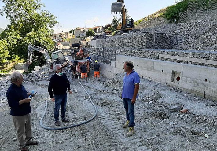 L’intervento in corso consiste nella ricostruzione del tratto di strada collassato e il ripristino della viabilità sul tracciato originario.