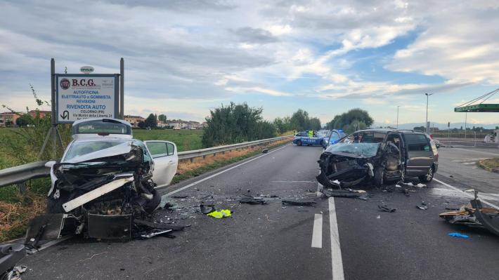 Spaventoso frontale sulla tangenziale di San Polo di Torrile: tre feriti - Le foto