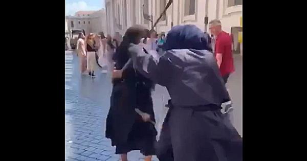 In un video pubblicato dall’associazione «Riprendiamoci Roma» due mendicanti con tanto di finta gobba si picchiano a colpi di bastone, probabilmente per questioni legate proprio all'elemosina, in piazza San Pietro.