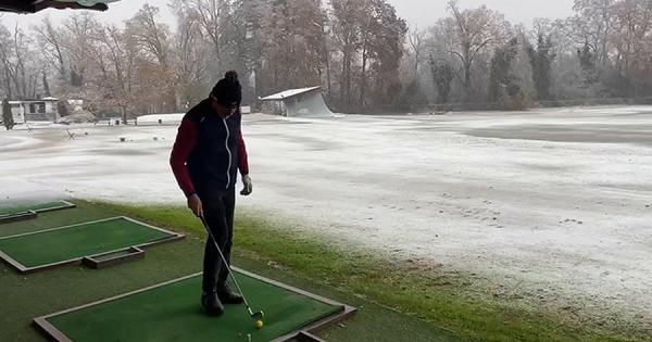 C'è chi non si fa scoraggiare dal maltempo e dalla neve: al campo pratica di Vigatto un golfista non teme il freddo e si allena. Guarda il video