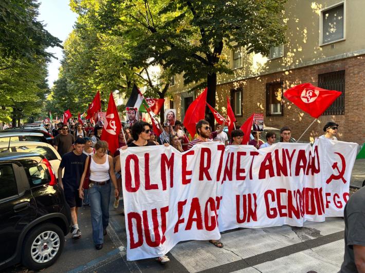 Alcune centinaia di persone sono partite in corteo, nella manifestazione per contestare la presenza in città dell’ex primo ministro israeliano, ospite del festival di Open, in piazza Garibaldi. Il gruppo è partito da piazzale Picelli, quartiere Oltretorrente. Imponenti le misure di sicurezza predisposte in centro. Olmert è atteso in presenza per un dibattito con l’ex ministro dell’Anp (probabilmente in videocollegamento) Nasser Al Qudwa