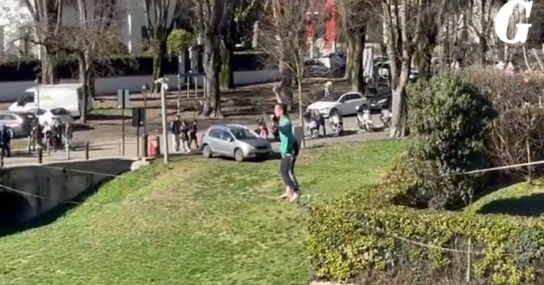 E' lì, in bilico sulla fune. Va avanti e indietro con tranquillità, sospeso a metri di altezza da una parte all'altra della Cittadella. Ad un certo punto si distrae, probabilmente per salutare qualcuno, e in un attimo si ritrova sospeso nel vuoto, sopra all'erba. Questa l'avventura di un funambolo, che stamattina si stava allenando. Per fortuna, essendo legato con le corde di sicurezza, non si è fatto nulla.