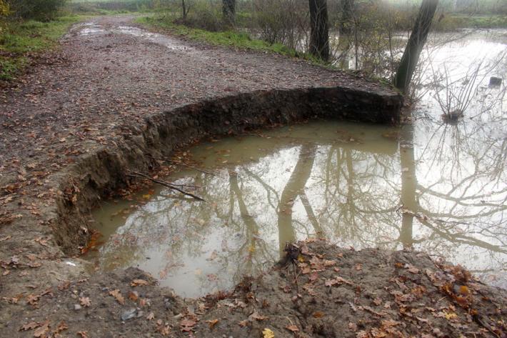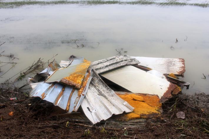Alcuni dei danni e dei rifiuti portati dalla recente piena del Po, a Polesine Zibello.