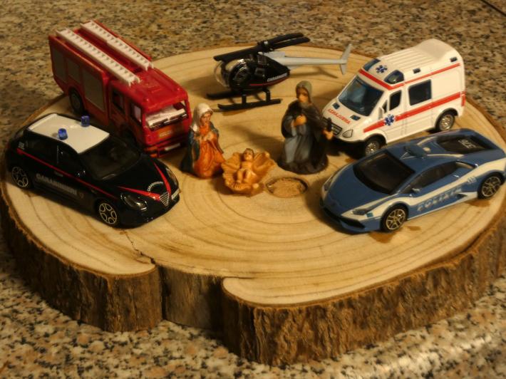 Un presepio tutto dedicato al volontariato e alle forze dell’ordine e ai soccorritori, per dire loro, semplicemente "Grazie". Una opera semplice, essenziale, ma con questa dedica voluta appunto per dire "Grazie" a tutti i soccorritori ed a chi si occupa di sicurezza. A realizzarlo è stato Paolo Panni ed è esposto a Zibello, nella mostra presepistica allestita all’ingresso del teatro Pallavicino, visitabile tutti i giorni, tranne il lunedì, dalle 9,30 alle 22, fino al 6 gennaio.